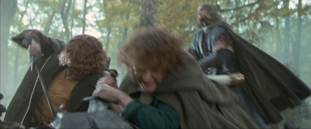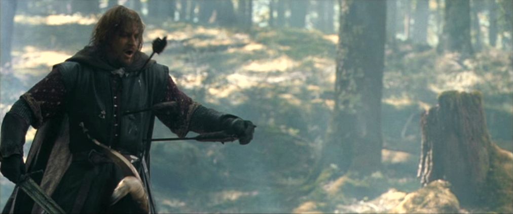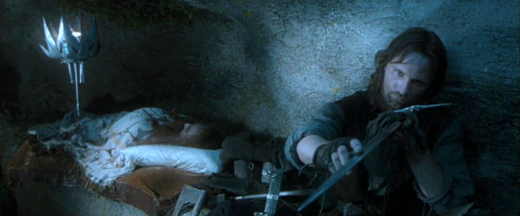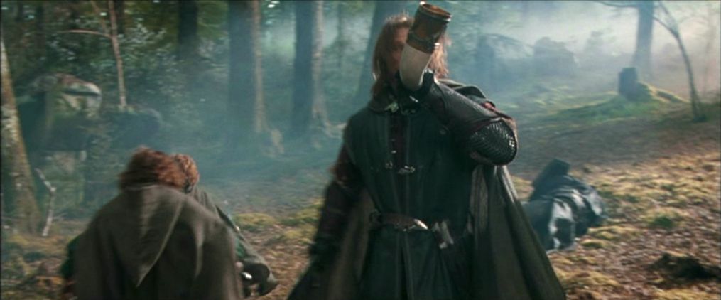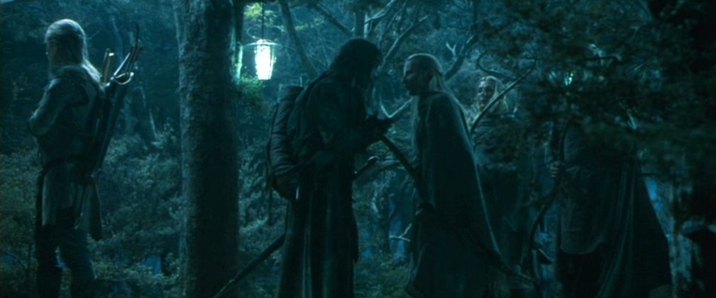 Aragorn arguing with Haldir, who don't want them going farther. For the record, scenes