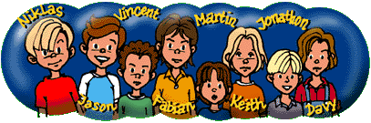 Dear Penpal! Let me tell you something about me and my friends. The picture on top of this page shows us all. I made one page for each and you can jump to the pages by clicking on their picture. We all live in a small town near a big city, with a narrow river and a church and stuff. Though our school is named Glenwood School it's not the name of our town. Let's say it's just somewhere, and even when we speak English and it's not your native language, our hood could be just around the corner. If I didn't have my friends it would be a boring place. Keith lives with his old grandma and Jonathon lives with his aunt. Their parents live in the big city and they have to take the bus to visit them.